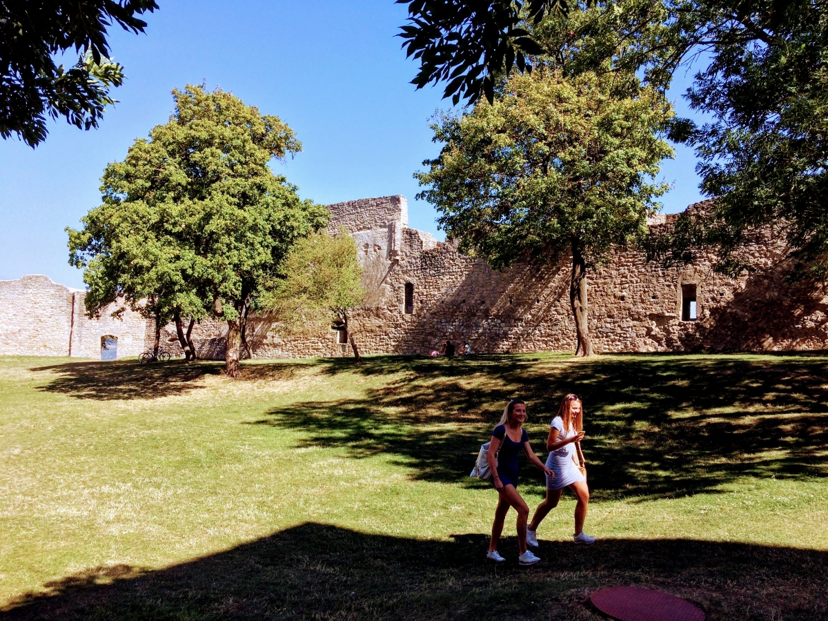 Tu sa ísť autom nedá a musíš si to pekne vyšľapať. Avšak, pod hradom je pekné parkovisko. Z neho to hore trvá asi desať minúť. Neviem, či som bol unavený alebo na mňa pôsobili dáke magické historické sily, no na nádvorí som sa cítil veľmi spokojne. Až tak, že som zaspal v tráve. Z hradu je super výhľad na celý Hainburg a taktiež na Bratislavu. Hrad tu stojí od roku 1050 a vstupné sa tu neplatí.