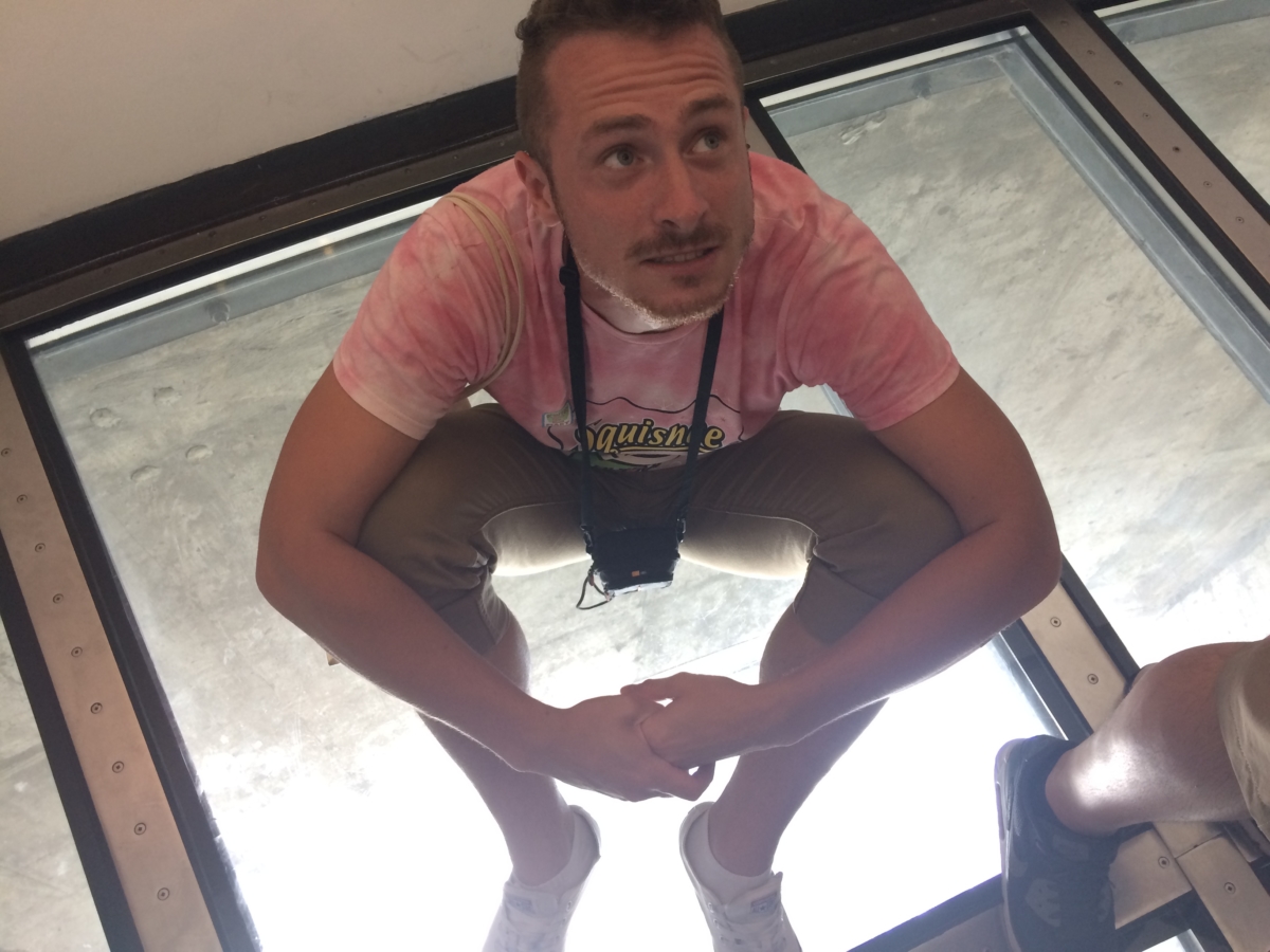 Moment, keď som si sadol na sklo a nevedel sa hýbať, bol desivý. Myslel som si, že strach z výšok som prekonal na ferratách v Rakúsku, no tu prišiel naspať. Nevedel som sa pohnúť a točila sa mi hlava. No a vedľa mňa sa motalo to krpaté decko, ktoré si myslelo, že sa mu nič nemôže stať. OMG ááááááá.