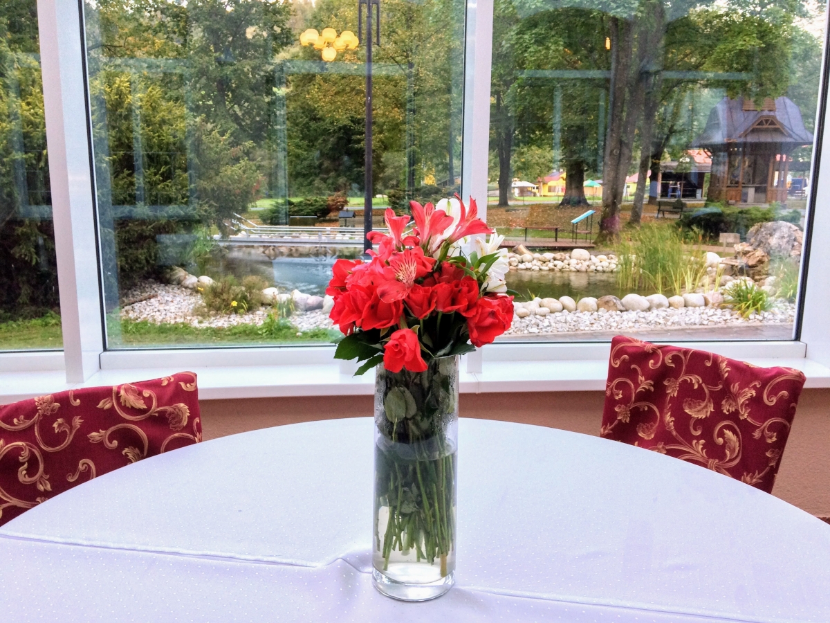 V kúpeľoch Smerdžonka som strávil jednu noc s polpenziou. Samozrejme, že tu ponúkajú aj plnú penziu. Najviac sa mi v Smerdžonke páčilo to, že hneď po príchode majú na recepcii prichystané poháriky na liečivú vodu, ktorú som si mohol neobmedzene čapovať. V iných hoteloch ťa privítajú šampanským, tu vodou, ktorá nie je obyčajná. Bod navyše! Už dávno sa o tomto mieste hovorilo ako o liečivej vode pod Troma Korunami, čo je pohorie, ktoré sa týči na Poľskej strane nad kúpeľmi.