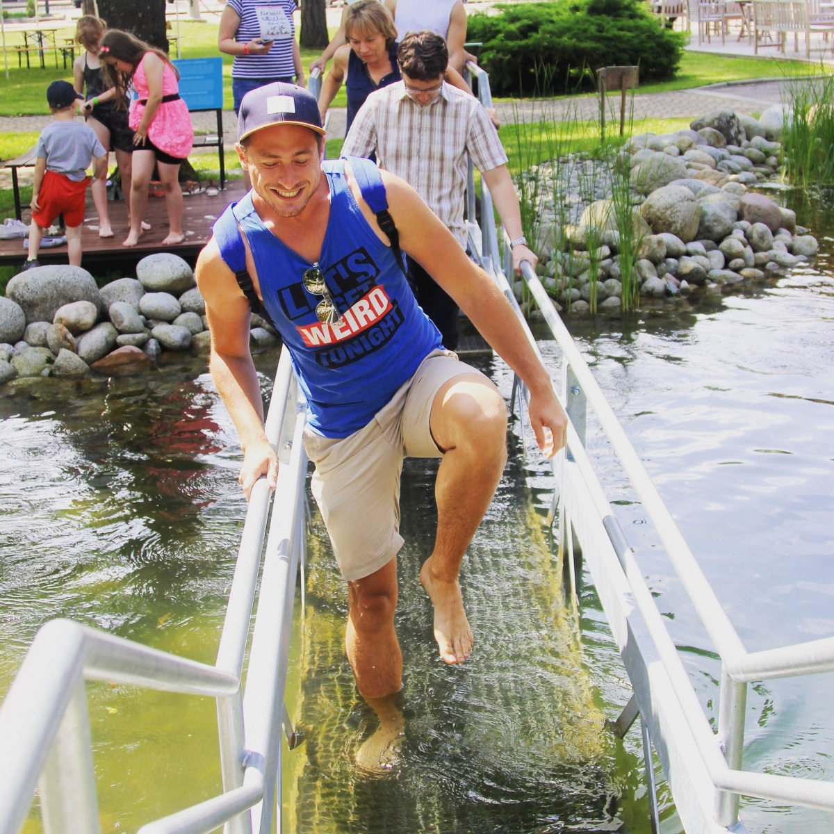 Kneippov chodník v Smerdžonke som si fakt zamiloval. V čom je taký výnimočný? Ide o procedúru založenú na striedaní tepla a chladu v studenej vode. Princíp je vo vysokom dvíhaní nôh, aby sa prekrvilo celé telo. Ako bocian. Terapia pôsobí dobre na látkovú výmenu krvný obeh.
