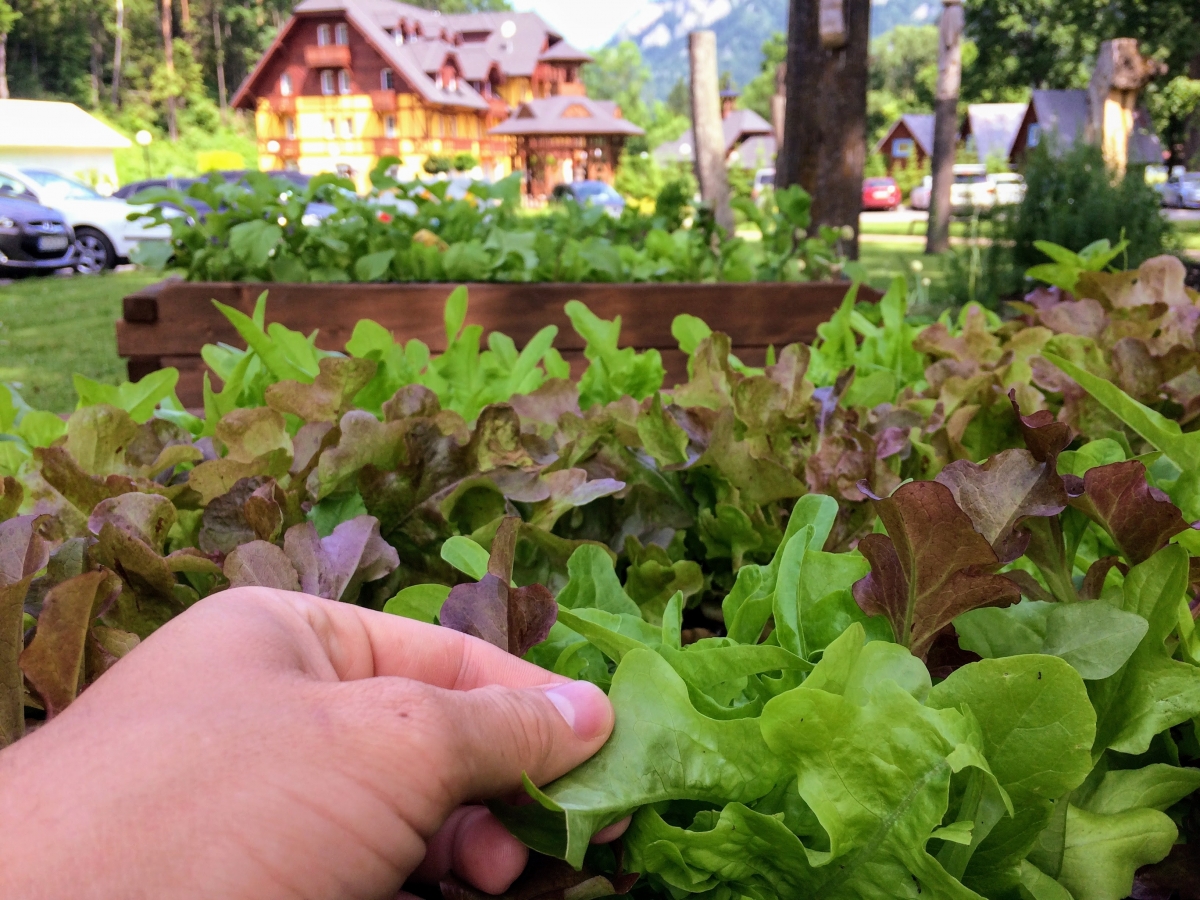 V areáli majú vlastnú bylinkovú záhradku, ktorú používajú vo varení. Je teda vysoko možné, že tá petržlenová vňať, ktorú budeš mať v polievke vyrástla v tatranskej prírode. Taktiež ma zaujali záhony so sirôtkami, čo sú vlastne prerobené plte, v ktorých sa splavuje Dunajec. Pekný nápad – čekni fotky nižšie.