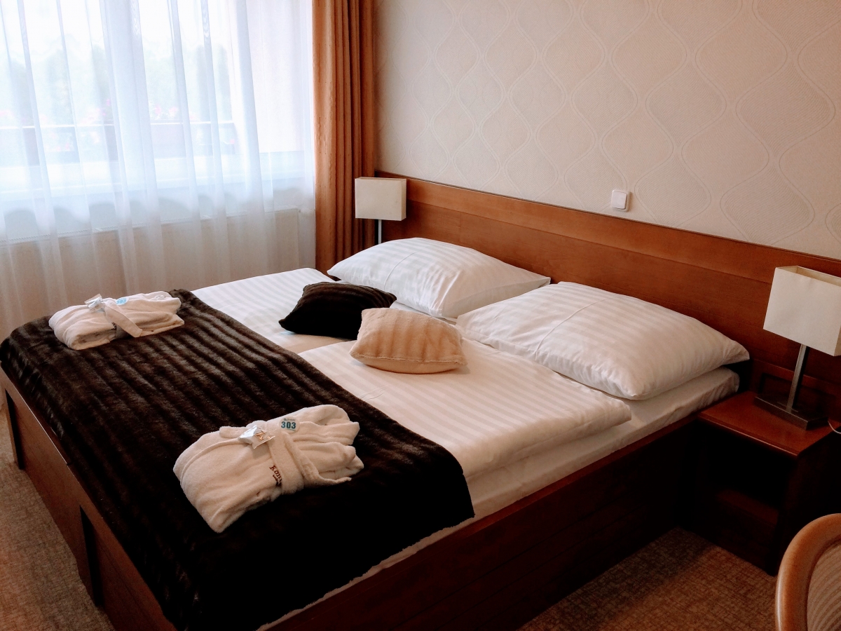 Moja izba bola príjemne zariadená a v kúpeľni sa nachádzal aj šampón so sprchovým gélom, papučami a uterákmi. Na posteli som mal, samozrejme, nachystaný župan a len čakal, kedy si ho oblečiem. V hoteli majú 2, 3 a 4 lôžkové izby a 2 a 3 lôžkové apartmány. Každá izba má minibar, LCD televízor aj fén. Hotel má taktiež vlastnú konferenčnú sálu, detský kútik, nočný klub, bowling, biliard, VIP salónik a lobby bar.