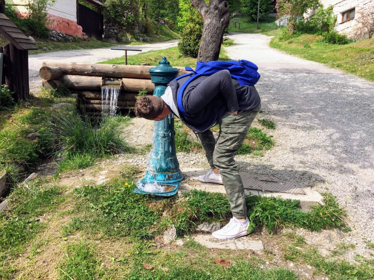 Musím Vás opraviť, to z čoho ste pil nie je studňa, ale práve spomínaný vodovod. Studňa je o pár metrov ďalej, vyzerá ako drevená búdka, je to klasická rumpáľová kopaná studňa s hĺbkou 11 metrov a už veľa rokov je uzamknutá, pretože nám do nej turisti neustále hádzali smeti.